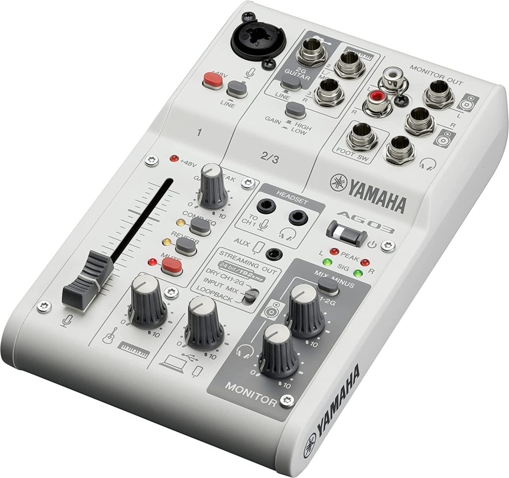 ヤマハのAG03MK2は、ライブ配信に最適化されたミキサーだにゃ。PCやスマートフォン、タブレットを通じてのライブ配信が快適にできるように設計されているにゃ。マイクやヘッドセットマイク、BGMプレイヤー、楽器など、さまざまなものを接続できるにゃ。そして、DSPによる音声処理で、COMP/EQもバッチリだにゃ!瞬時に操作できるユーザーインターフェースも魅力的だにゃ!