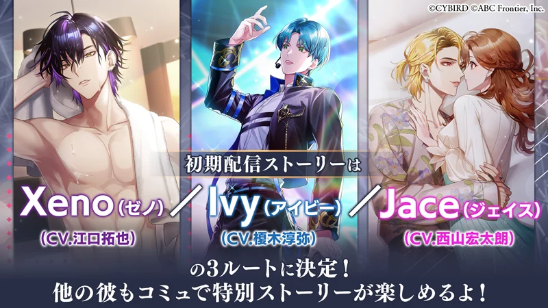 Xeno、Ivy、Jaceの3人のキャラクターとのストーリーが初期から楽しめるんだにゃ。フルボイスで彼らとの絆を深めることができるなんて、まるでリアルに恋してるみたいにドキドキするにゃ!