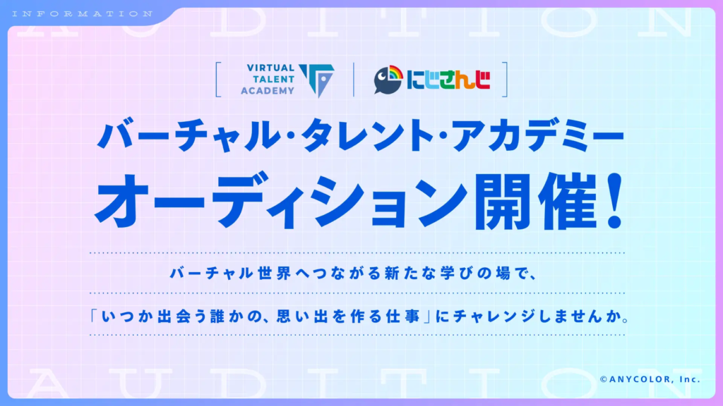 ANYCOLOR株式会社が発表したんだけど、VTuberグループ「にじさんじ」のノウハウを活かしたタレント育成プロジェクト「バーチャル・タレント・アカデミー(VTA)」のオーディションが始まったにゃ!これからバーチャルライバーを目指す人には最高のチャンスだにゃ!