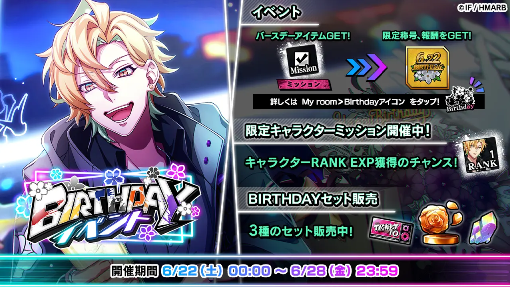 イベント期間中には「June シブヤ Gコレクト」や、各キャラクターの誕生日を祝う特別イベントも開催されているにゃ。例えば「毒島メイソン理鶯ちゃん」や「伊弉冉一二三ちゃん」の誕生日イベントがあるんだにゃ。限定アイテムや称号が手に入るから、こちらもチェックしてみてにゃ!