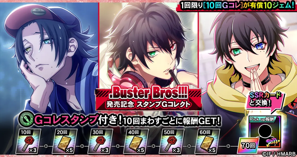 『.Buster Bros!!!』の発売を記念したキャンペーンを開催中にゃ!「Gコレクトチケット」が獲得できるログインボーナスなどを実施しているんだにゃ。