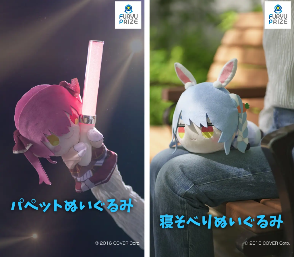 まずは注目の「パペットぬいぐるみ」だにゃ。昨年12月に登場した兎田ぺこらちゃんのデザインをもとにして、今回新たにホロライブタレント全員がオリジナルアートで登場するにゃ。7月から9月にかけては、白上フブキちゃん、夏色まつりちゃん、百鬼あやめちゃん、大神ミオちゃん、さくらみこちゃん、宝鐘マリンちゃん、天音かなたちゃんたちのぬいぐるみが次々と登場する予定だにゃ。衣装は普段の衣装と、フリューオリジナルアートの園児服や先生服の2パターンがあるにゃ。どれも可愛くて個性的で、見てるだけでワクワクしちゃうにゃ!