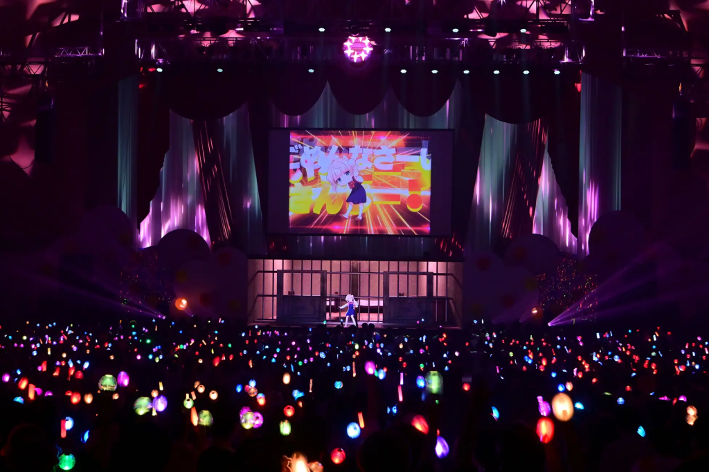 オープニング映像では、しぐれういちゃんがキービジュアルの額縁から飛び出して、会場に向かってくる演出があって、みんなの期待が一気に高まったにゃ!そして、ステージが照らされると同時に、会場中から大きな声援が湧き上がって、しぐれういちゃんが登場!ライブの始まりにゃ~!