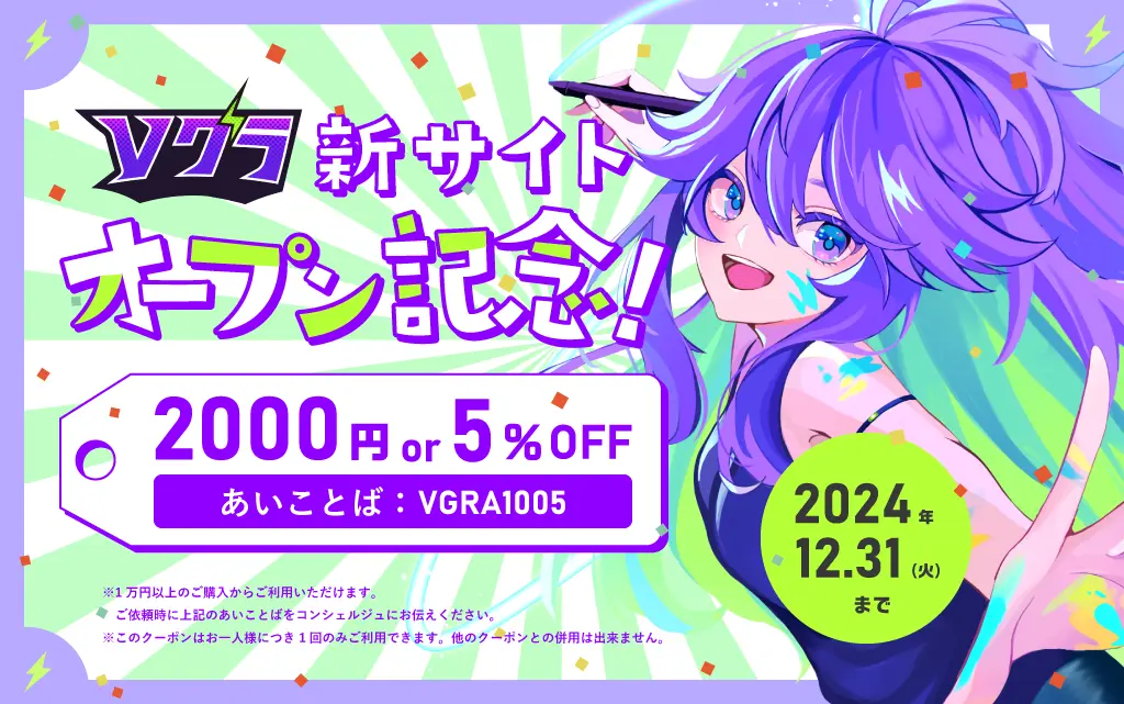 そして、2024年10月5日(土)18:00に「Vグラ」の新しいサービスサイトがオープンするにゃ!しかも、今だけ限定のクーポンも配布してるから、Vtuberデビューを考えている人や、もう活動しているけどもっと成長したいと思っている人は今がチャンスにゃ!詳細は公式サイトでチェックするにゃ~!