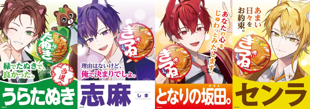 うらたぬきちゃんはすでに「緑のたぬきアンバサダー」に決定していて、残る3人が「赤いきつねアンバサダー」の座を争うんだってにゃ。投票の方法は、メンバーが赤いきつねを食べながら紹介する動画を観て、「誰の紹介が一番美味しそうだったか」に基づいて投票するんだにゃ!みんなどれだけ美味しそうに食べるか、猫戸も気になるにゃ〜!