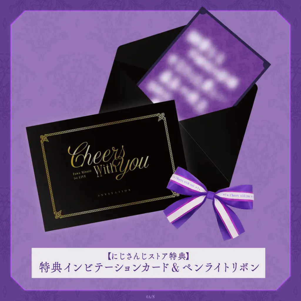 にじさんじオフィシャルストアで税込5,000円以上購入すると「インビテーションカード&ペンライトリボン」がもらえるにゃ!ライブ気分が高まる特典にゃ!