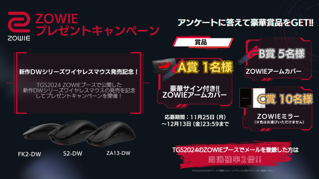 - A賞:サイン付きZOWIEアームカバー(1名)
