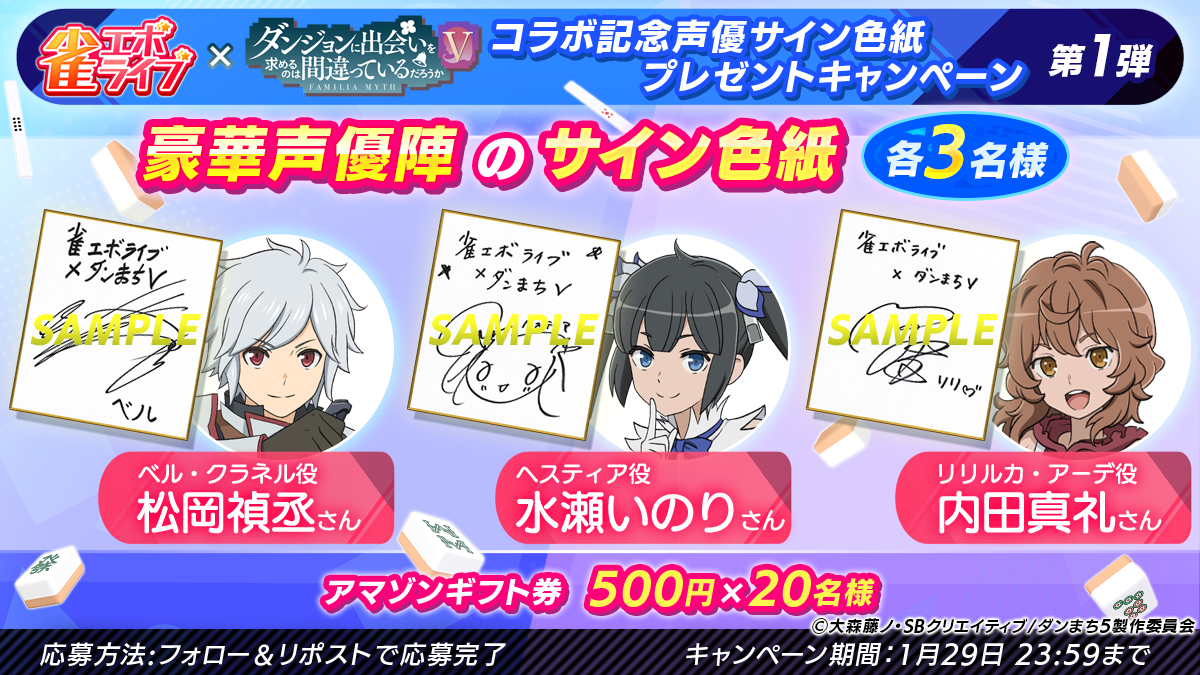 株式会社enishが手がける新感覚麻雀ゲーム『雀エボライブ』が、2026年1月16日から人気アニメ「ダンジョンに出会いを求めるのは間違っているだろうかⅤ」とのコラボを開始します。今回の企画では、登場キャラクターのボイス付きガチャや豊富なコラボアイテムが用意され、ファン必見の内容となっています。