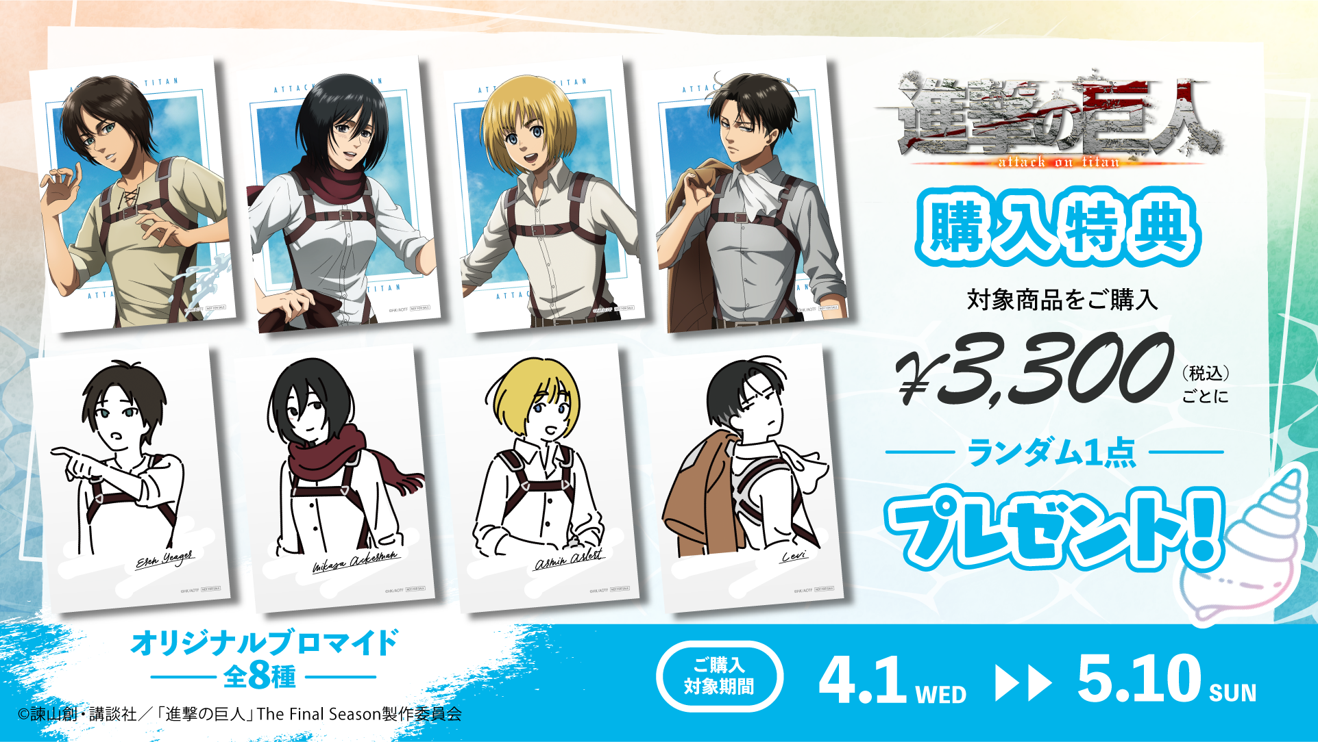 著作権表記は以下の通りですにゃ。©︎諫山創・講談社/「進撃の巨人」The Final Season製作委員会: