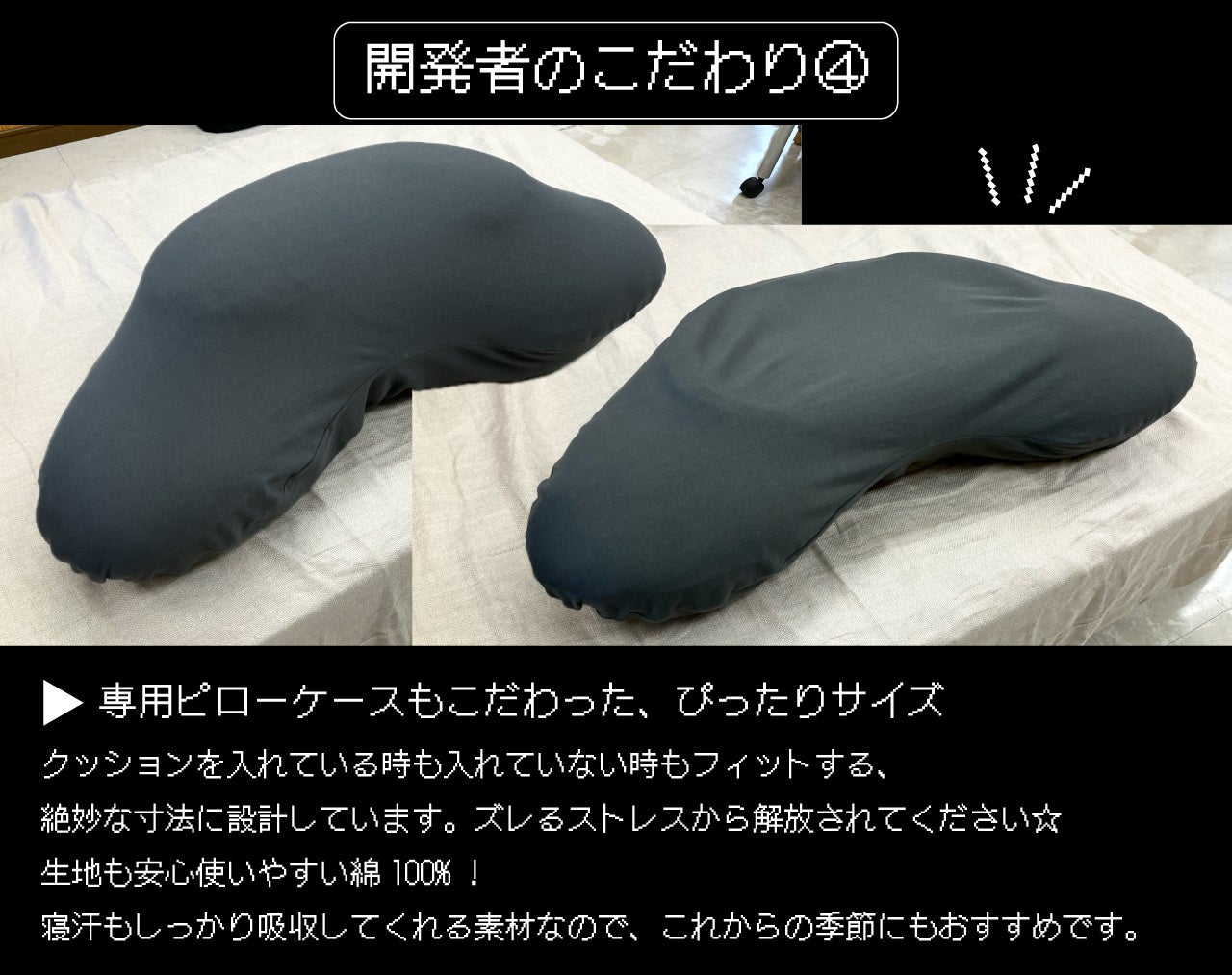 ヨコネグくんクッションの下には、2本の巧妙な縫い目が隠されていますにゃ!これが頭がフィットするポイントで、寝やすさをアップさせているんですにゃ。